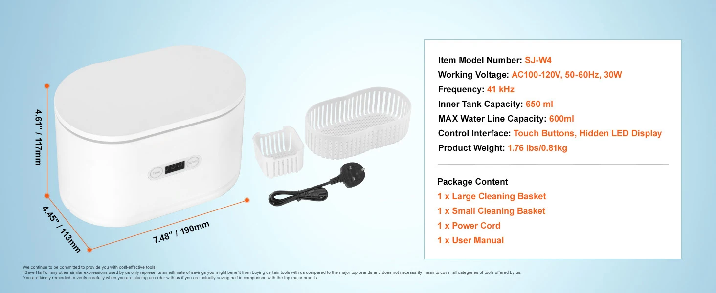 High-Quality & Durable: The interior tank is made of durable 304 stainless steel, which is rust-proof and corrosion-proof. Additionally, the including cleaning basket secures small parts, preventing items from moving and ensuring cleaning results.